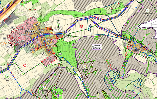 Die Entwicklung der Gemeinde Klettgau wird stark durch ihre Lage an der Grenze zur Schweiz beeinflusst. Die reich strukturierten Hänge seitlich der intensiv genutzten Klettgaurinne, die Bäche und weitere Strukturen in der überwiegend ausgeräumten Ebene bieten vielfältigen Lebensraum für geschützte Arten. Die Bestandsaufnahme zum Landschaftsplan analysiert das vorhandene Landschaftspotenzial und die vielfältigen Nutzungskonflikte.