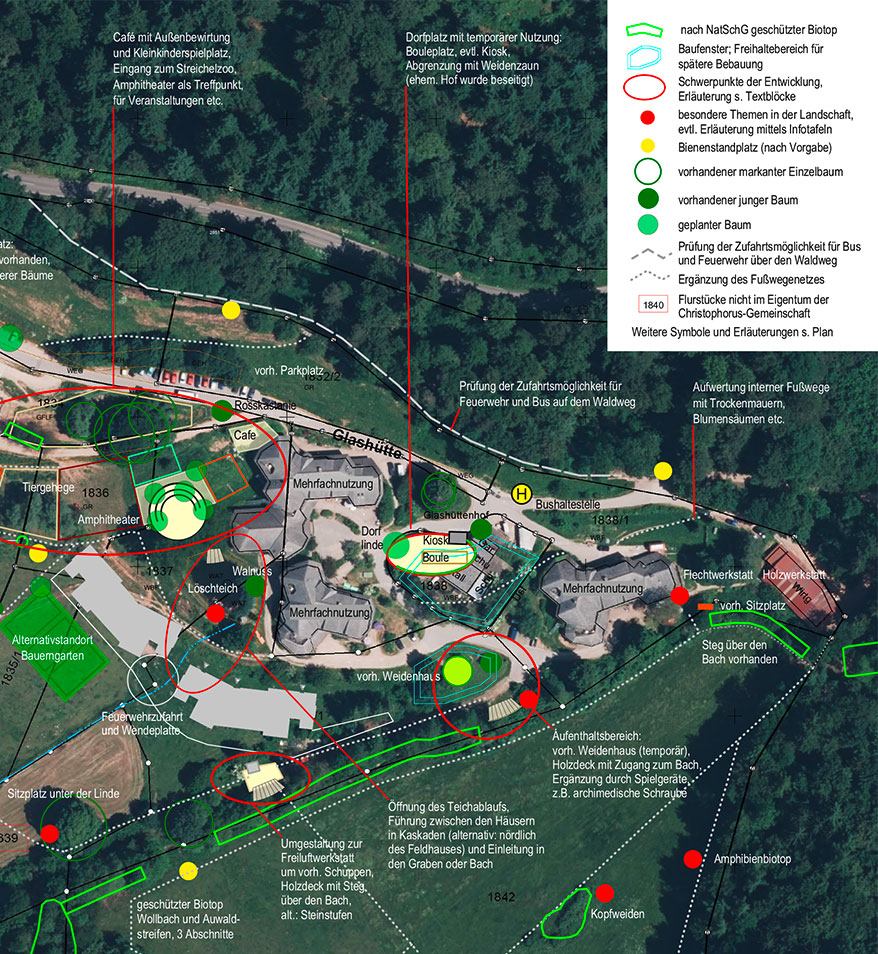 Um die geänderten Anforderungen an die Integration der behinderten Menschen erfüllen zu können, sollen ergänzende Tätigkeitsfelder angeboten werden mit dem Ziel, den Kontakt zwischen den Bewohnern und den Besuchern der Werksiedlung zu intensivieren. Ein Entwicklungskonzept für die vielfältigen Aktivitäten, die im Außenraum möglich sind, soll dies unterstützen.