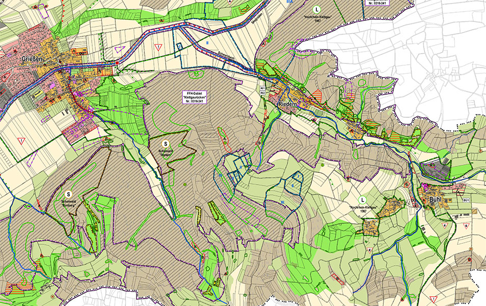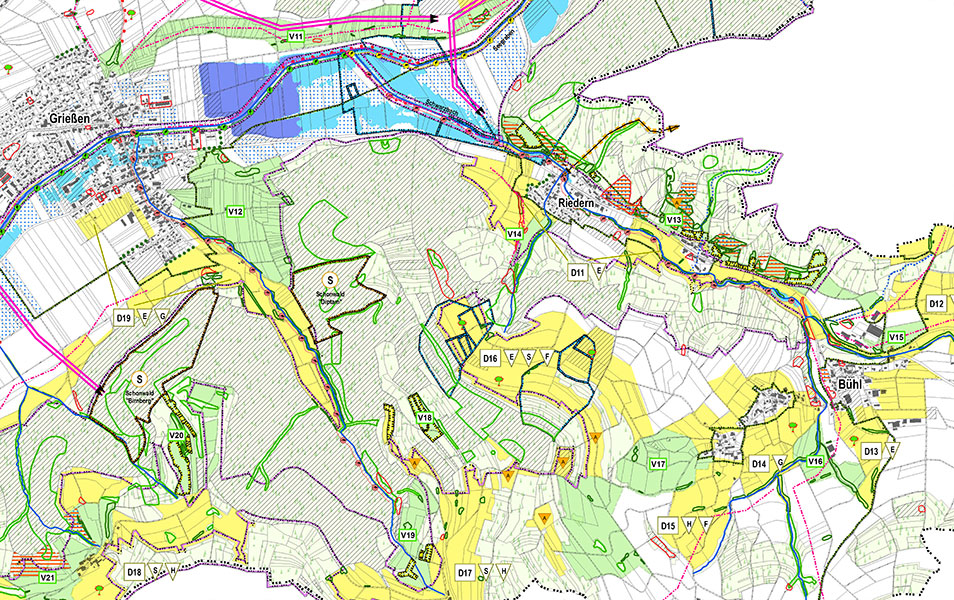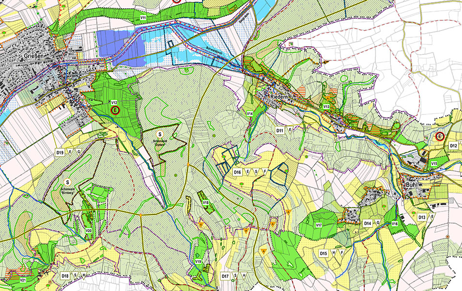 Leistungen | Landschaftsplan nach HOAI: Bestandsaufnahme, Untersuchung und Bewertung des Zustandes von Natur und Landschaft, Beurteilung der potenziellen Bauflächen, Landschaftsplanerische Empfehlungen für die Entwicklung von Natur und Landschaft, Vorschläge geeigneter Ausgleichsflächen, Abstimmung TÖB, Umweltbericht zum Flächennutzungsplan |