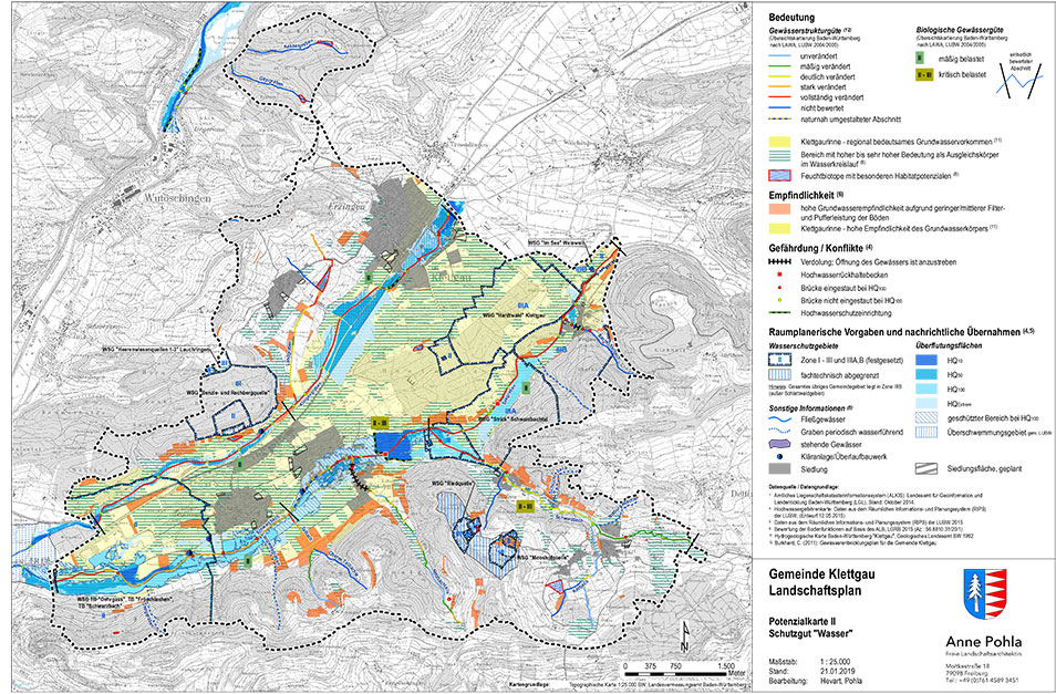 In der Klettgaurinne floss in vergangenen Zeiten der Rhein, der das Gelände formte und die Aue mit einem Schotterkörper anfüllte. Die für die Landwirtschaft hochwertigsten Böden liegen über den ergiebigen Grundwasservorkommen in der Klettgaurinne. Die hohe Empfindlichkeit des Grundwasserkörpers führt nicht nur mit der Landwirtschaft zu Konflikten, sondern auch mit anderen Flächennutzungen. Das Hochwasserrisiko schränkt die bauliche Entwicklung entlang der Bäche zusätzlich ein.