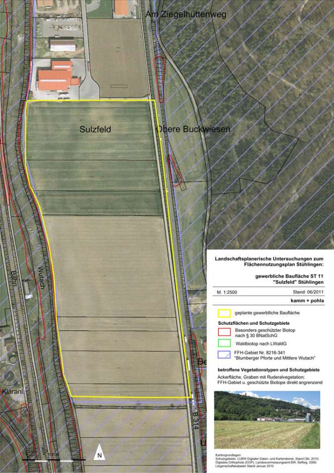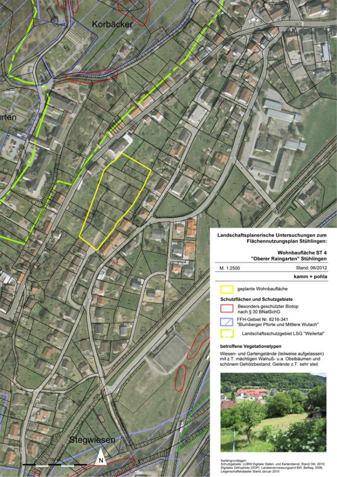Die Stadt Stühlingen besteht aus dem Hauptort Stühlingen, dessen historischer Kern markant an der Hangkante der Wutach liegt, und weiteren 11 kleinen, überwiegend ländlich strukturierten Stadtteilen. Mehr als 30 potenzielle Bauflächen wurden landschaftsplanerisch untersucht, um die für eine Bebauung am Besten geeigneten Flächen auswählen zu können.