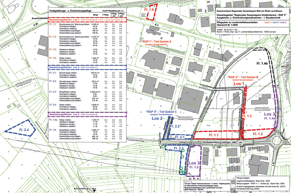 Im Bebauungsplan und zugehörigen Grünordnungsplan für das interkommunale Gewerbegebiet "RGP II" sind Ausgleichs- und Grünordnungsmaßnahmen festgesetzt, die mit der Gebietserschließung (1. Bauabschnitt) und der Ansiedlung von Gewerbebetrieben herzustellen waren.