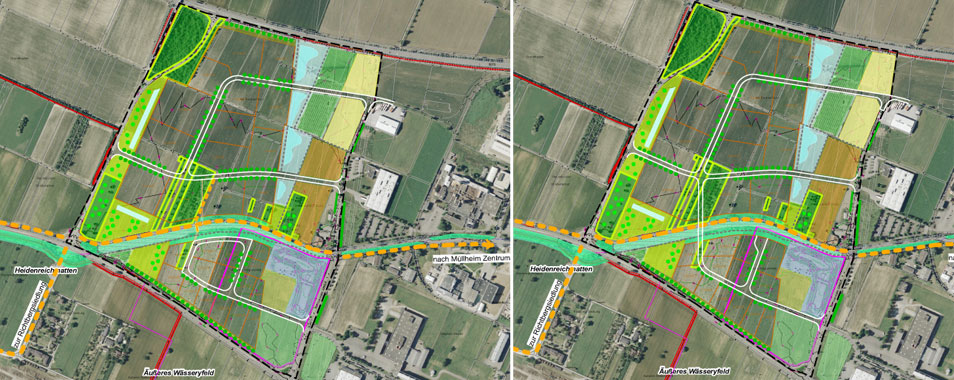 Das favorisierte Konzept (Variante A) sieht die ungestörte Erhaltung dieser wichtigen Verbindung und Landschaftsstruktur vor. Auf eine Querung für den KFZ-Verkehr wird verzichtet.