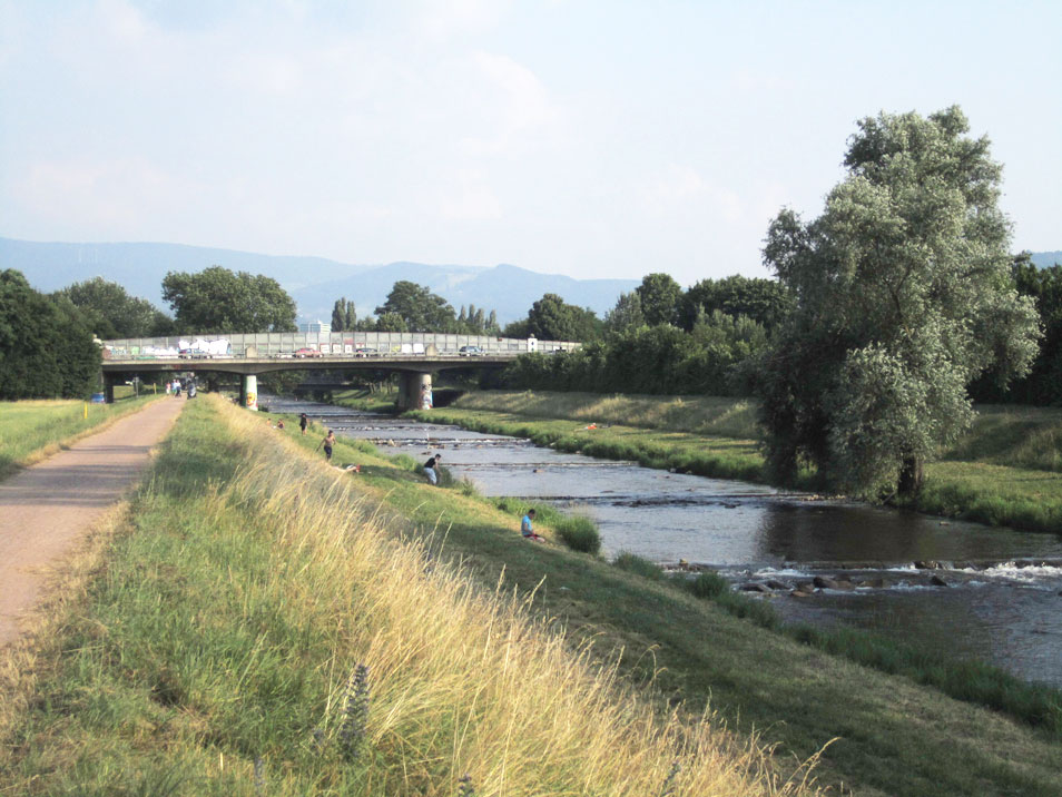 Der östliche Dreisamdamm wird zurückverlegt, um dem Fluss mehr Raum zu geben. Das Flussbett wird aufgeweitet, es entstehen Flussinseln, die sich periodisch verändern, und das Dreisamufer wird naturnah mit flachen Böschungen und Grünflächen am Wasser umgestaltet. Eine neue einladende Flusslandschaft mit sehr hoher Aufenthaltsqualität entsteht.