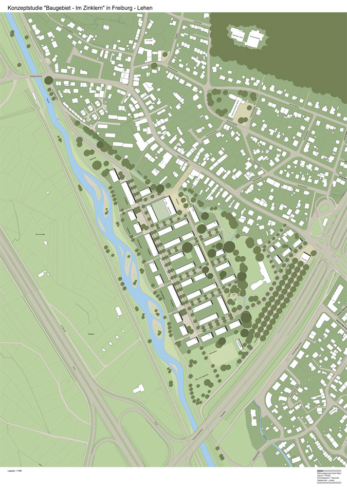 Die anhaltende Wohnungsnachfrage, knappe Baulandreserven, konträre Diskussionen zur Innenentwicklung und unterschiedliche Vorstellungen zur Ausgestaltung und Dichte eines neuen Quartiers veranlasste die Stadt Freiburg, fünf Planungsteams mit einer Konzeptstudie für die Bebauung des Gebietes „“Im Zinklern“ im Stadtteil Lehen zu beauftragen, um verschiedene Ideen für die weitere Entwicklung zu erhalten.
