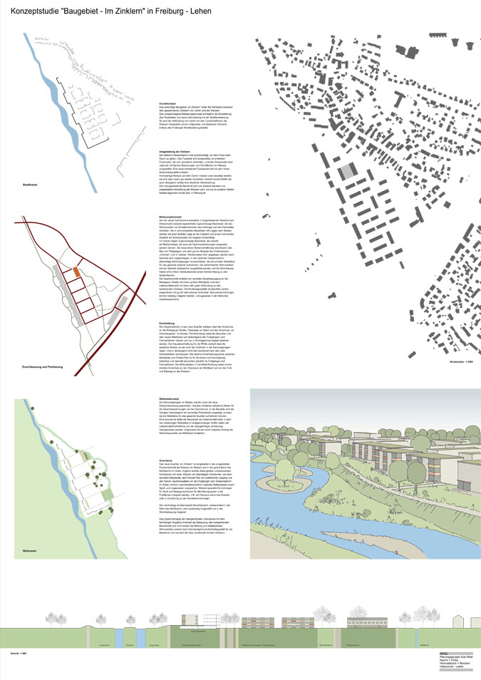 Das zukünftige Baugebiet „Im Zinklern“ bildet die Nahtstelle zwischen dem gewachsenen Ortskern von Lehen und der Dreisam. Das vorgeschlagene Bebauungskonzept ermöglicht die Erweiterung des Flussbettes und seine Verknüpfung mit der Stadterweiterung. So wird die Verbindung von Lehen mit dem Landschaftraum der Dreisam hergestellt und ein prägnanter und attraktiver Ortsrand entlang des Freiburger Nordwestens gestaltet.