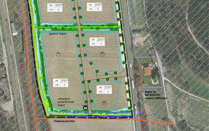 Aufgabenstellung | Gewerbegebiet (ca. 1 ha) Planung separater Ausgleichsmaßnahmen |